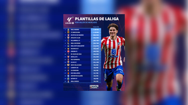 El contexto general del campeonato ayuda a entender aún más el mérito del Espanyol. LaLiga en su conjunto pierde valor: de 5,57 mil millones pasa a 5,45, una caída del 2,1 %. Incluso gigantes como el Real Madrid (-24 M€) o el Atlético (-34,8 M€) bajan. El Barça sube ligeramente, pero es una excepción.