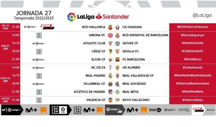 LaLiga acaba de dar a conocer el horario de la jornada 27 y el Espanyol seguirá abonado a las 14.00h. Los blanquiazules jugarán el sábado 1 de abril ante el Girona FC en Montilivi, en una hora que ya se ha convertido en habitual para los espanyolistas.