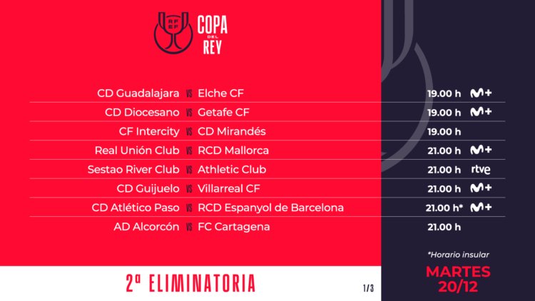 El resto de horarios de la segunda eliminatoria de la Copa del Rey son los siguientes: