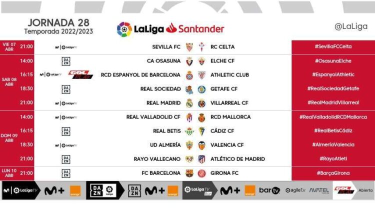 LaLiga ya ha dado a conocer los horarios correspondientes a la jornada 28 del campeonato liguero de Primera división. Fecha en que el Espanyol deberá verse las caras con el Athletic Club.