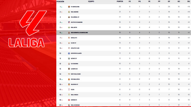 LaLiga EA Sports 25-26 | El Espanyol cede un puesto tras los partidos del sábado y es sexto en la tabla
