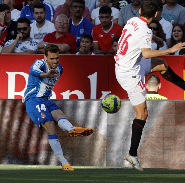 Arranque intenso en el Sevilla–Espanyol. Ganas y atrevimiento por parte de ambos equipos. Bien plantados, librando una intensa batalla en la medular. Disputándose el balón. Pudo adelantarse el Espanyol en el 4’ gracias a una buena jugada asociativa que Nico culminaba con un centro que Dmitrovic dejaba pasar y Puado no atinaba a rematar a puerta vacía. Y de una área al otra, para que Pacheco volviera a ser clave bajo el marco perico tras un tremendo error en el despeje de Cabrera y César Montes, ni uno ni otro atinó y Óliver Torres casi adelanta a los se villistas de no ser por un inspirado Pacheco.