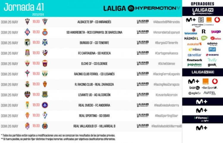 HORARIOS | Estos son los horarios de la jornada 41 en #LALIGAHYPERMOTION.