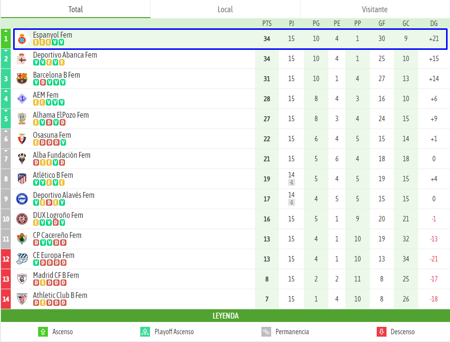 El Espanyol Femenino se pone líder de la categoría de plata femenina empatado a puntos con el RC Deportivo Abanca