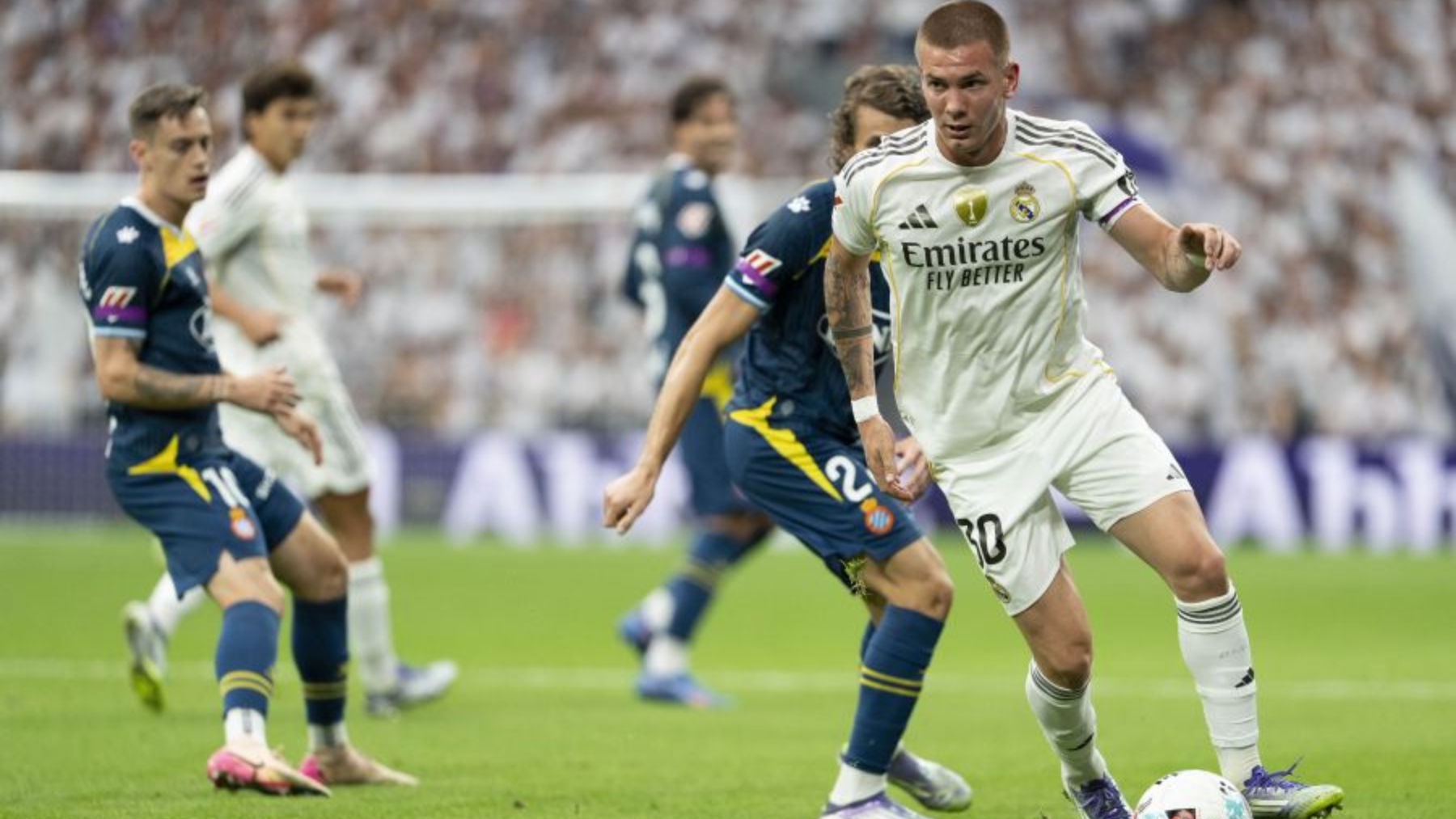 Nuestro colabrador remarcó que los de Manolo plantaron cara en el inicio. “La primera parte ha sido buena. Si analizamos la primera mitad a nivel de llegadas y volumen ofensivo, el Espanyol ha tenido sus ocasiones y el Madrid no nos ha generado esa sensación de estar encerrados, de agobio, de no salir del área, de sufrir mucho. Hoy no la he tenido. Solo una acción puntual ha podido desestabilizar nuestro sistema defensivo, que la verdad es que ha estado muy bien”.
