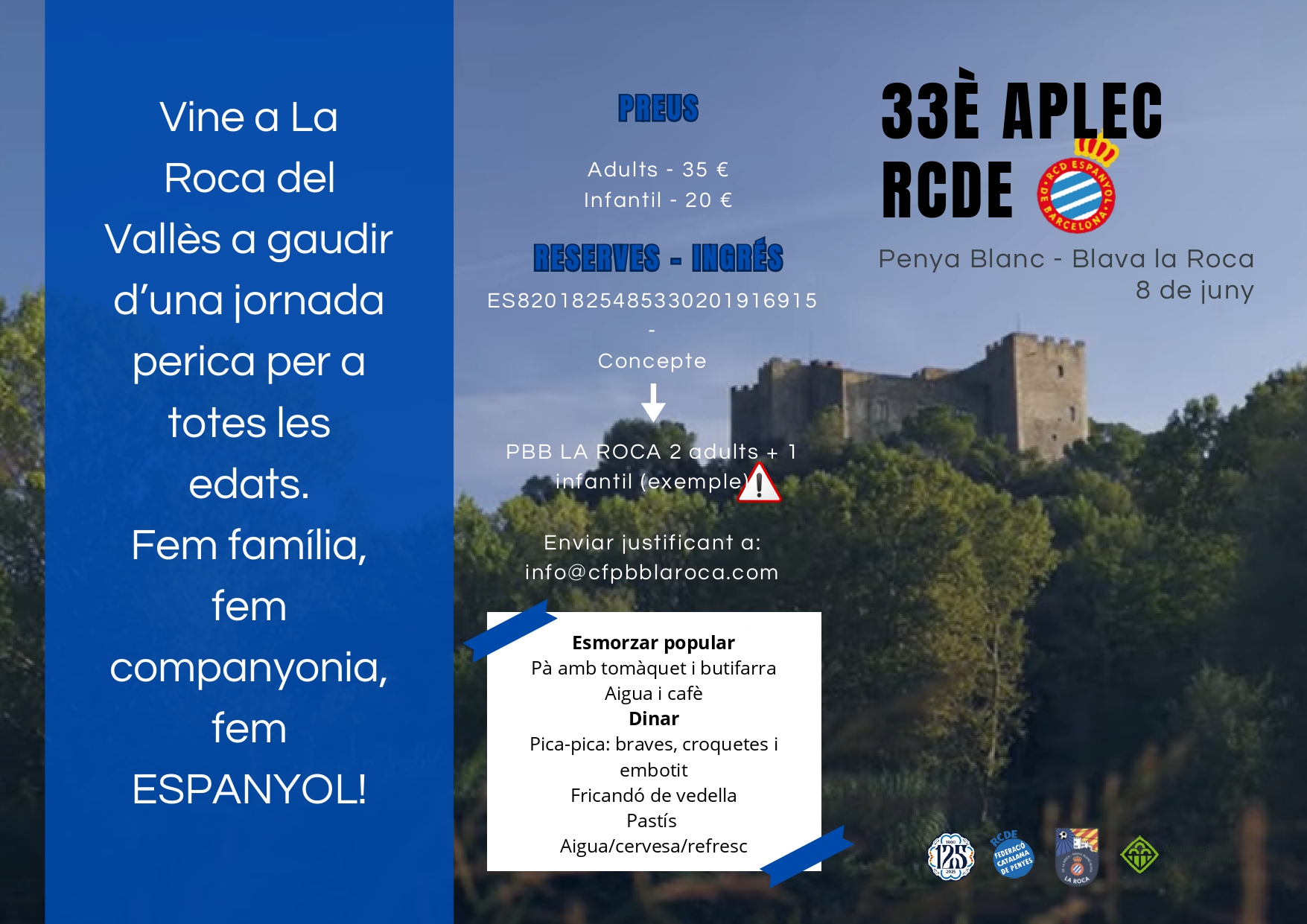 Una jornada como esta no solo refuerza lazos. También nos recuerda que ser del Espanyol va mucho más allá de un resultado o una clasificación. Es un sentimiento, un espacio compartido. Y por eso, este sábado, en La Roca, no será solo una reunión de peñas. Será un día para volver a decirnos que aquí, pese a todo, todavía late una gran familia blanquiazul.