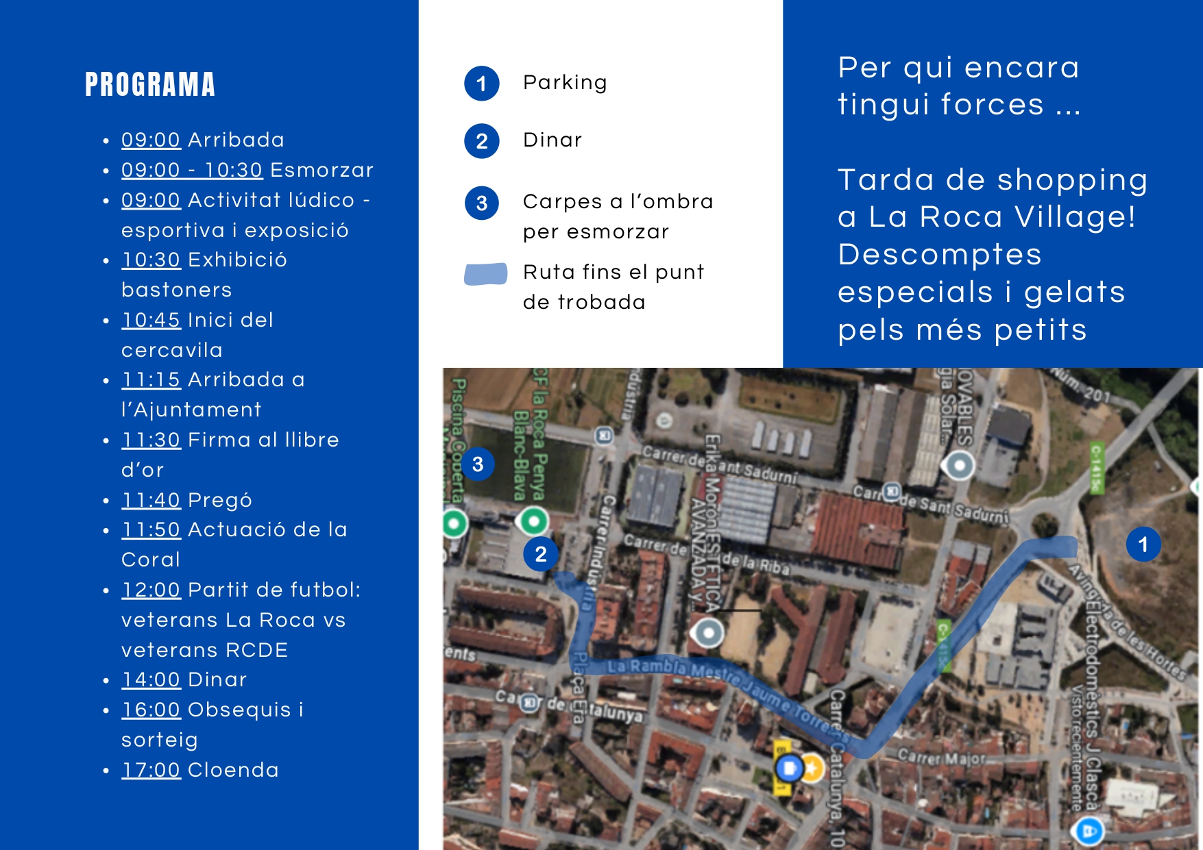 Por la tarde, y para quien aún tenga energía después del sorteo y los obsequios, la organización propone rematar el día con una visita a La Roca Village para disfrutar de unas horas de shopping.