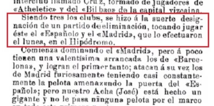 Un detallado informe que publica As detalla como hasta ahora aparecía documentado en libros y bases de datos un partido entre Athletic y Espanyol, con un resultado final de 4-0, que supuestamente se jugó en el Hipódromo de Madrid el 7 de abril de 1903. En teoría, formaba parte de la segunda ronda de un torneo en el que también jugaban el Real Madrid y el Espanyol. No obstante, esta historia nunca ocurrió en la realidad. En 2022, el historiador Víctor Martínez Patón descubrió en los Cuadernos de Fútbol del CIHEFE que el reglamento establecía eliminatorias en días alternos, desmontando la versión oficial que se daba por buena hasta entonces. El liderazgo de la investigación de Martínez Patón fue tomado por el Grup de Recerca de la Fundació Privada del Espanyol, encabezado en esta ocasión por Xavier Ruiz. Estos expertos se aseguraron de verificar que este presunto Athletic – Espanyol nunca tuvo lugar.