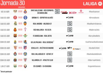 LaLiga ha hecho oficiales los horarios de los partidos que componen la jornada 30 de LaLiga EA Sports 2024-25, que...
