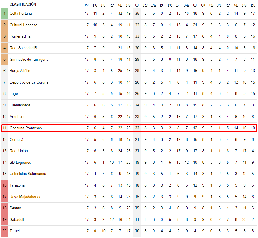 El jugador perico cedido al conjunto del Osasuna Promesas jugó todo el partido y está recuperando sensaciones y confianza, aunque pierden su partido frente al Sestao River por dos goles a uno -el Sestao River es uno de los equipos que está en zona de descenso-. Los de pamplona ocupan la decimoprimera posición de la primera RFEF del grupo 1, donde el líder es el Celta Fortuna y los puestos de play off están marcados por el Gimnàstic de Tarragona, con 29 puntos.