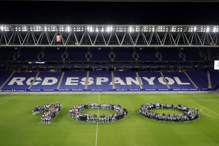 Como símbolo de ese siglo de historia, los y las futbolistas de la base perica, de la Escola Dani Jarque, de la Escola de Sant Cugat y el RCDE Special. han dibujado sobre la hierba del Stage Front Stadium un enorme 100. Además, se ha querido reconocer el trabajo de antiguos responsables del Fútbol Base perico, de directivos de este negociado, como Joan Escoda, Jordi Lardín, Fran Navarro, Àlex García, Luis Vicente Mateo, Anna Maria Fusté y Albert Garrofé. El club también ha querido tener un detalle con los clubs formadores previos de los actuales jugadores y jugadoras de los respectivos primeros equipos como Víctor Ruiz, Ángel Fortuño, Joan García, Pol Lozano, Nico Melamed, Javi Puado, Jofre Carreras, Omar El Hilali, Laia Jordán, Júlia Serrat, Judit Pablos, Júlia Guerra, Ari Márquez, Laura Lobo y Aina Durán. Han sido invitados y han sido obsequiados con una camiseta del jugador o jugadora formado en sus clubs entidades como el FC Barcelona, UE Cornellà, Vilafranca, Vilanova i la Geltrú, Cornellà, Mercantil. GEIEG, UE Quart, Girona, CE Sallant, CE Manresa, Damm, Ferran Martorell, Hospitalet At., Santa Eulàlia, Júpiter, Levante Las Planas, San Gabriel, Igualada, CE Europa, UB Catalònia, Llinars, Vilassar, Llerona y At. Sant Ponç. Durante el acto han intervenido personalidades como el CEO del club, Mao Ye Wu, el jugador del primer equipo Pol Lozano, el director deportivo del club, Fran Garagarza, la directiva responsable del fútbol femenino, Dolors Ribalta, y el vicepresidente de la Federació Catalana de Futbol (FCF), Miquel Sellarès.