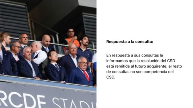 La respuesta del CSD fue tan sorprendente como contundente: “En respuesta a su consulta le informamos que consultados los documentos obrantes en el Consejo Superior de Deportes (CSD) consta resolución de la presidencia del CSD, de fecha 21 de agosto de 2025, mediante la que se autoriza la adquisición de 32.818.036 acciones del RCD Espanyol de Barcelona, S.A.D. por parte de la mercantil Velocity Sports Limited, que pasaría a ostentar el 99,66% del capital social de la mencionada S.A.D.”.