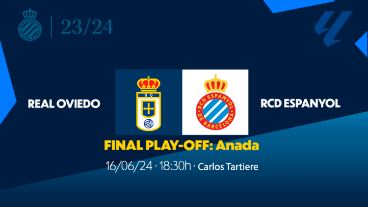 El RCD Espanyol se enfrentará al Real Oviedo en la final de playoff de ascenso a Primera división; el club blanquiazul detalla el proceso para adquirir entradas en el partido de ida, en el estadio Carlos Tartiere este próximo domingo 16 de junio a las 18:30 horas, exclusivo para socios. El club pone en marcha el proceso de inscripción previo pago de la entrada (30€) para este partido: