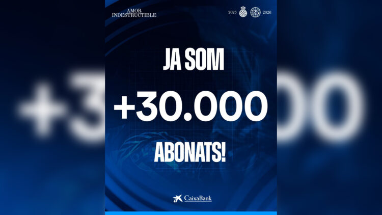 El Espanyol ha dado hoy un dato que no pasa desapercibido: ya son más de 30.000 los abonados que han renovado o se han sumado a la familia blanquiazul en esta campaña. Una cifra que no solo bate registros de los últimos años, sino que refleja a la perfección el momento que vive el club: un auténtico renacer, tanto deportivo como institucional y, sobre todo, emocional.