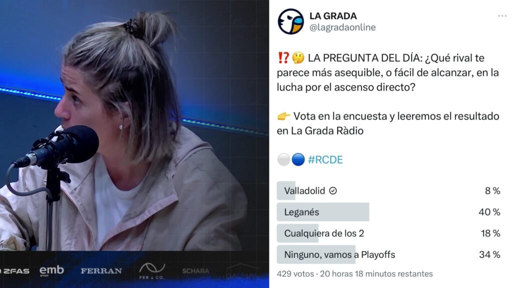 En ‘La Grada Ràdio’, este martes hemos seguido analizando sobre este Espanyol que ve cómo se le va esfumando la posibilidad de un ascenso directo con cada empate, enfrentándose a un playoff de resultado incierto. Como decimos, los dos conjuntos que encabezan LaLiga Hypermotion, Leganés y Valladolid, aventajan en cuatro puntos al equipo de Manolo González, que está obligado a enlazar una buena serie de victorias consecutivas para mantener viva esa posibilidad de ascender directamente: el objetivo pasa por sumar entre 12 y 13 puntos, comenzando este domingo por el Sporting de Gijón.