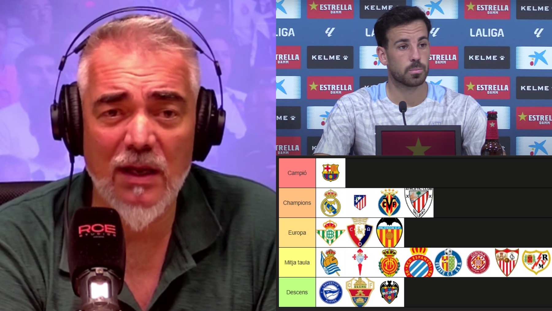 También ha habido hueco para las noticias positivas: tras la inscripción de Tyrhys Dolan, toda la plantilla del Espanyol está ya disponible para el estreno liguero. Y, como cada año por estas fechas, ha llegado el momento de las quinielas. Àlex Cobas ve campeón al Atlético, con Espanyol en media tabla y Sevilla, Elche y Alavés descendiendo. Santi Barrantes apuesta por el Madrid como ganador, al RCDE igualmente en media tabla y con Girona, Elche y Alavés cayendo a Segunda. Francesc Via, por su parte, pone al Barça revalidando título, con el Espanyol en esa “ineludible” media tabla y el descenso para Alavés, Elche y Levante.