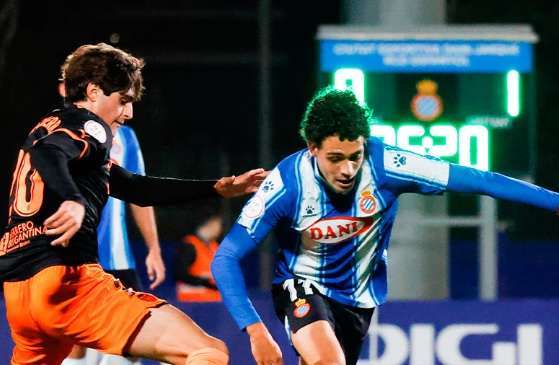 Con el balón ya en juego, el Espanyol B dio un paso al frente en busca del gol que le metiera en el duelo, el cual a punto estuvo de llegar en el 54′ cuando Becerra mandó el balón al larguero con un testarazo. El problema de irse hacia arriba tan alegremente era que se quedaba la defensa descubierta, y eso ocurrió en el tercero del Valencia Mestalla. Los visitantes montaron una contra y, en un res para dos, Marí dejó encarrilado el triunfo.