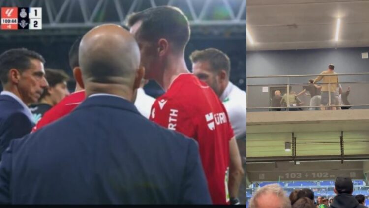 También hay aficionados blanquiazules que han reportado momentos de tensión por el comportamiento inadecuado de algunos seguidores béticos. Así, se ha viralizado en redes una pelea entre aficionados, con el ex presidente del Espanyol Joan Collet intentando poner paz.