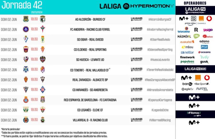 HORARIOS | Estos son los horarios de la jornada 42 en #LALIGAHYPERMOTION.