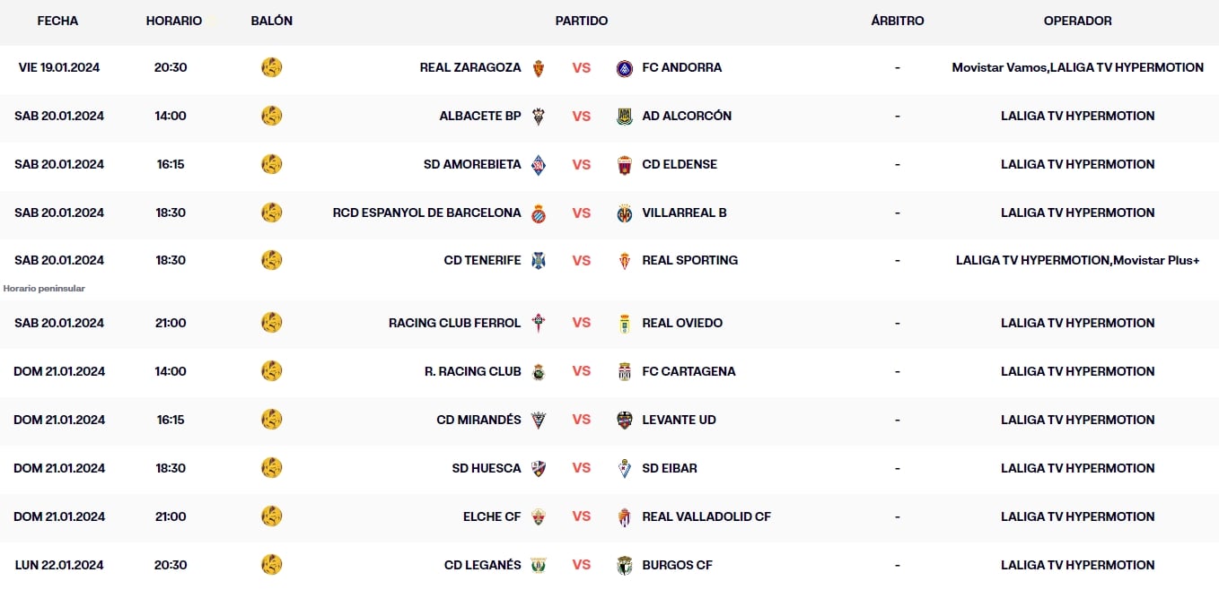 La próxima jornada, la 23ª de LaLiga Hypermotion, aparte del Espanyol – Villarreal B tocará estar atentos a otros encuentros como el Tenerife – Real Sporting, el Racing de Ferrol – Real Oviedo, el Huesca – SD Eibar, el Mirandés – Levante UD y el Elche CF – Real Valladolid.