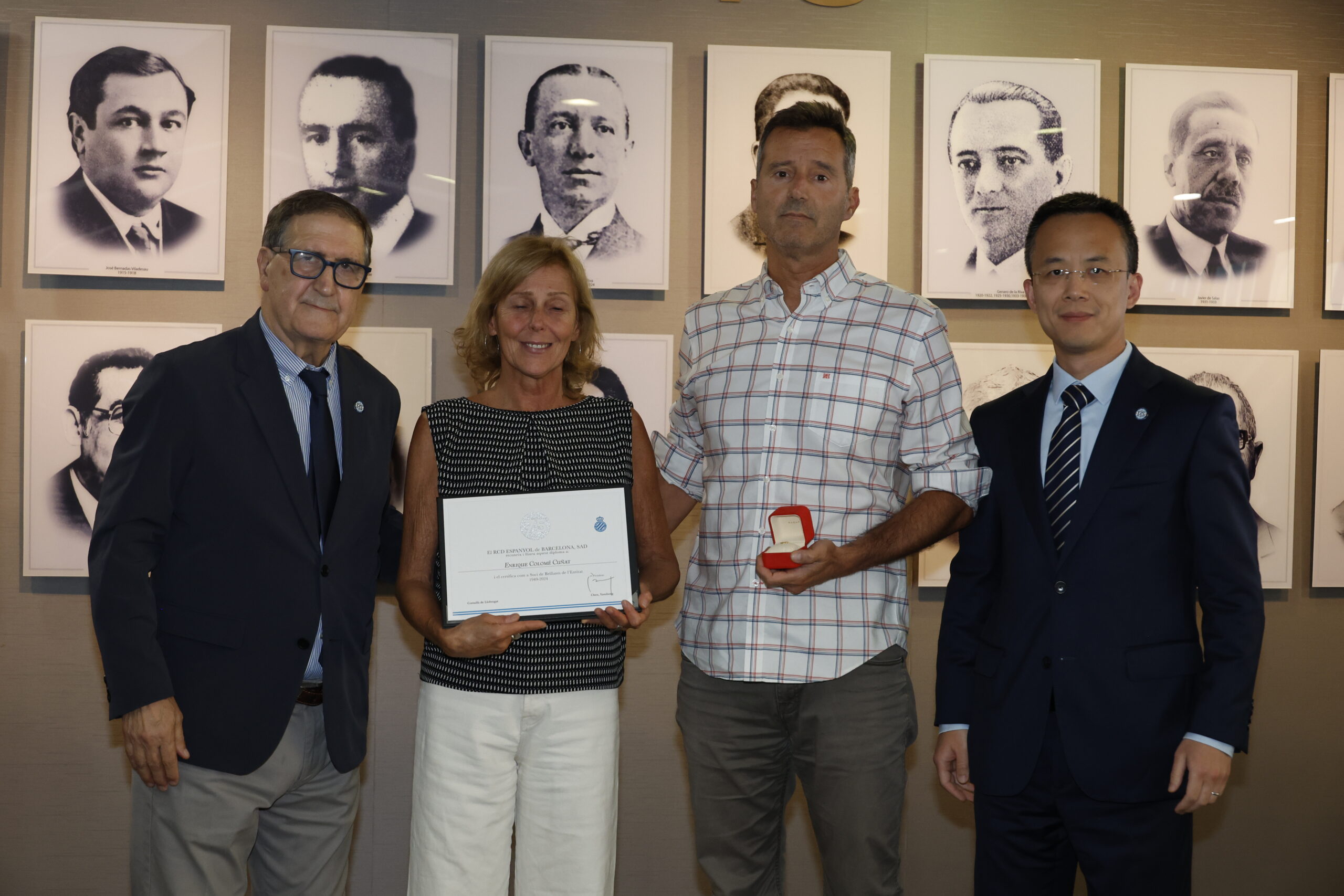 Mao Ye, CEO del Espanyol, y Rafa Marañón, leyenda blanquiazul y consejero, encabezaron la entrega. Entre los homenajeados había socios muy vinculados al club como Sergio Oliveró y Antonio Giménez, de la Fundació, o Carlos Ferrer, del grupo de Recerca Històrica.