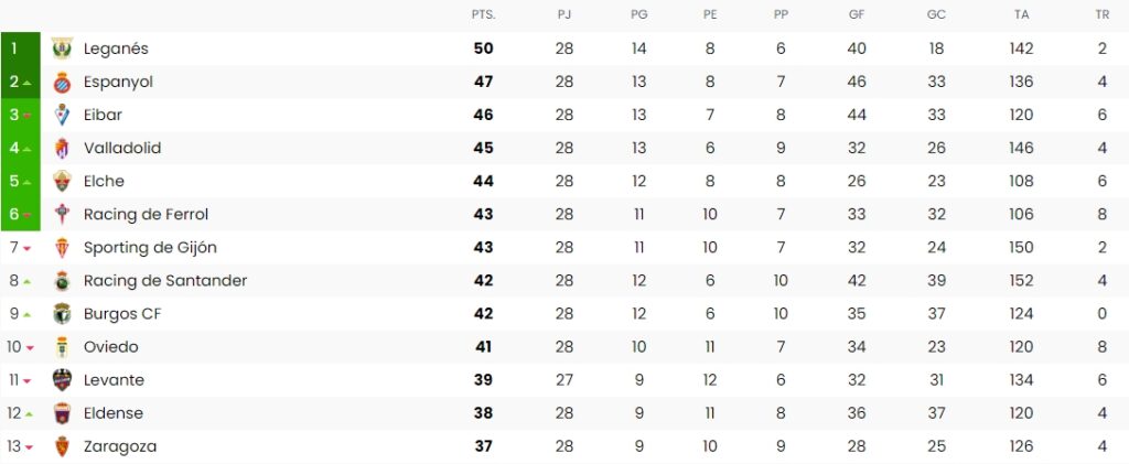 Estamos en un punto importante de la temporada para el Espanyol. La recta final del campeonato liguero en Segunda división, comercialmente conocida como LaLiga Hypermotion, ya es una realidad y con la última jornada jugada, la 28 del calendario, se dio carpetazo al segundo tercio del curso. Ahora solo quedan 14 partidos para el desenlace y el conjunto de Luis Miguel Ramis se ha situado en una situación de privilegio: los blanquiazules son segundos, sumando 47 puntos a tres del liderato; por el momento, el Leganés sigue en primera posición y es ahora mismo el principal candidato al título, mentras que justo por detrás de estos dos equipos se encuentran en posiciones de playoff de ascenso Eibar, Real Valladolid, Elche y Racing de Ferrol. Este sábado (Stage Front Stadium, 16:15 horas), el Espanyol recibirá a un Huesca con la moral alta tras arrasar Anduva goleando al Mirandés (0-3); el conjunto perico ha de hacer valer su condición de solvente local para batir a un rival que lucha por distanciarse de la zona baja de la tabla, pero que, recordando el dato que explicábamos ayer, es el segundo mejor visitante de la categoría con 18 puntos, sólo superado por el Leganés -21-.