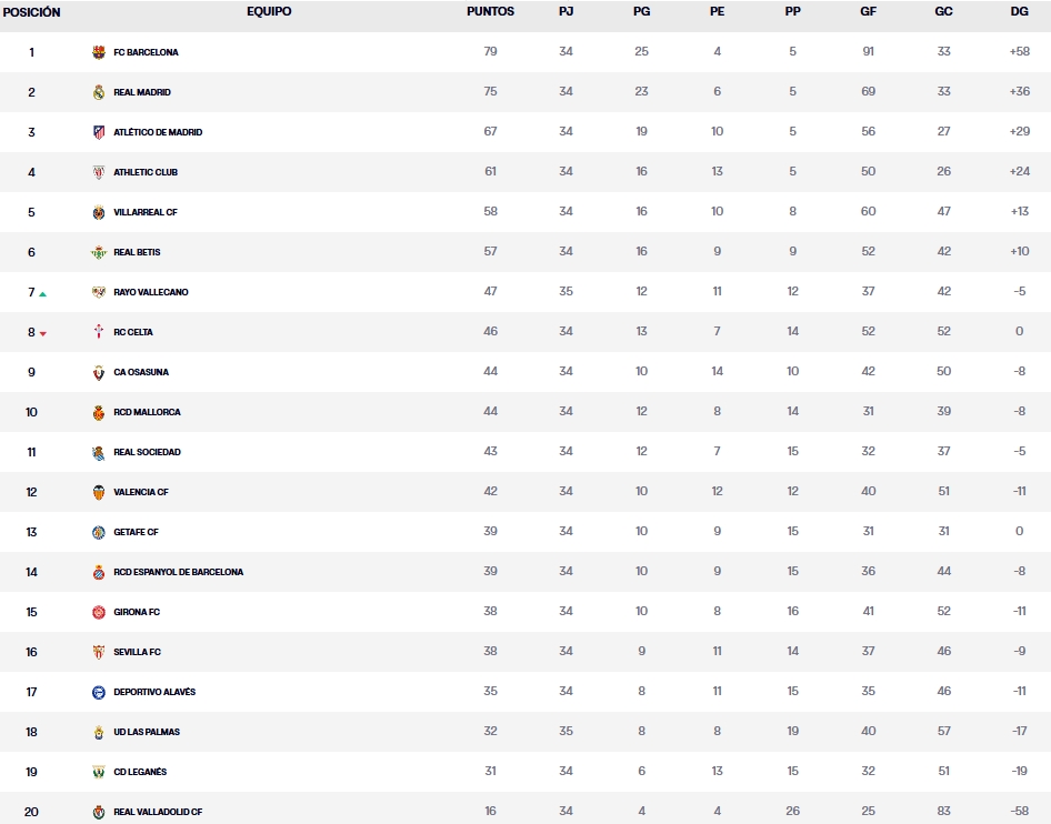 La jornada arrancaba en Gran Canaria con el UD Las Palmas – Rayo Vallecano, en un duelo que era clave en la lucha por la permanencia y también por Europa. Triunfo clave del cuadro vallecano (0-1) con gol de Álvaro tras pase de Isi. Los de Iñigo Pérez se meten en zona europea y hunden a una UD Las Palmas que sigue en caída libre. Además, la victoria franjirroja deja al Espanyol a un paso de la permanencia: si gana el domingo en Leganés, será matemáticamente equipo de Primera.