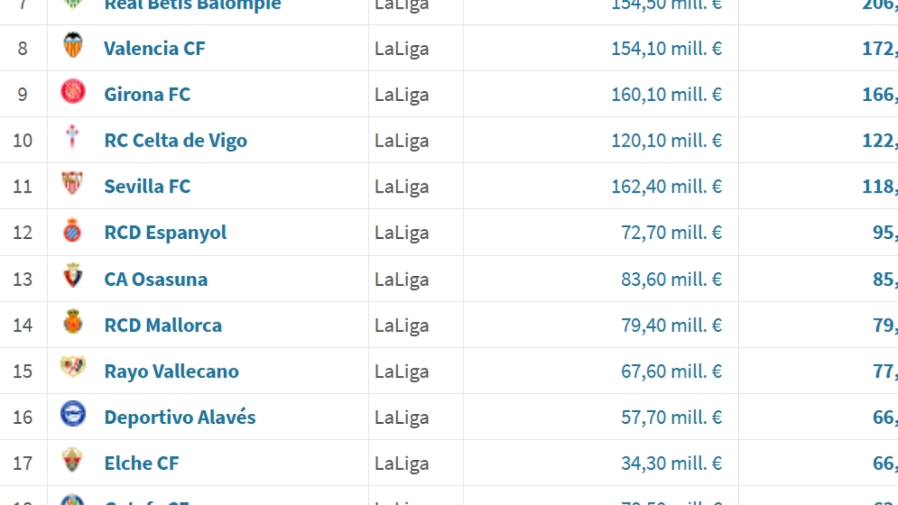 La tertulia también se detuvo en las valoraciones de Transfermarkt. El Espanyol ha pasado de 72,7 a 95,4 millones de valoración en apenas tres semanas, lo que supone un crecimiento del 31,2%. Solo Elche y Oviedo, en situaciones muy particulares, han crecido más. El Hilali encabeza la lista con 15 millones, seguido por Koleosho (12M) y Puado (10M). Detrás aparecen nombres como Carlos Romero, Pol Lozano, Urko o Terrats, todos rondando los 4-5 millones. En conclusión, el Espanyol ha subido un peldaño y se coloca ya por encima de equipos como Osasuna, Mallorca o Rayo en el ranking de Primera.