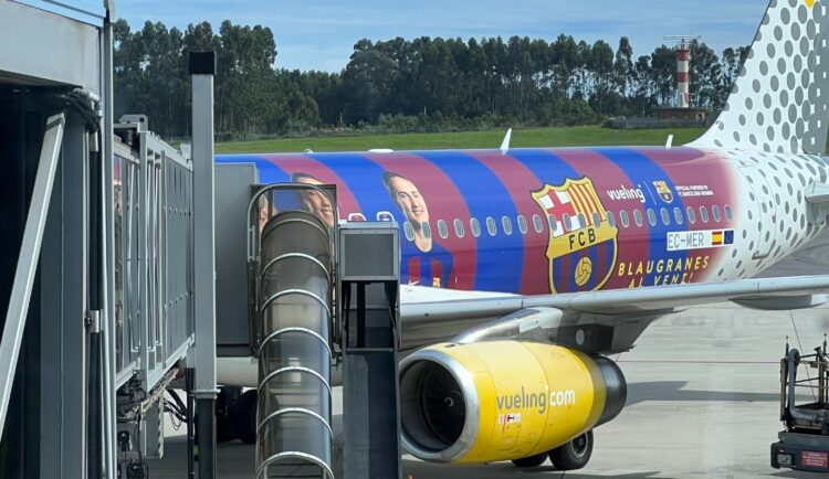 Cosas de la vida, aficionados del RCD Espanyol que hoy viajan de vuelta desde Oviedo hasta Barcelona se han encontrado con la desagradable sorpresa de haber de hacerlo en un avión con la librea -la decoración exterior, haciendo servir términos profanos- con los colores del FC Barcelona, y motivos azulgrana en su interior. La nave presenta un diseño que combina los colores y el escudo azulgrana, con la imagen de once jugadoras en representación del equipo. Desde el pasado mes de abril, el Barça femenino estrenó en el marco de colaboración con la aerolínea Vueling un avión personalizado con sus colores, esta misma unidad, que también presta servicios en vuelos regulares y que por ejemplo, también se encargó de desplazar a seguidores del Real Madrid con destino a Londres para la disputa de la última final de la Champions League, algo que fue denunciado en redes por los aficionados blancos al considerarlo una provocación.  La casualidad o no ha hecho que estos seguidores blanquiazules, entre los cuales se encuentra el ex consejero del RCD Espanyol Robert Hernando, hayan tenido que volar con este avión dedicado a las futbolistas barcelonistas.
