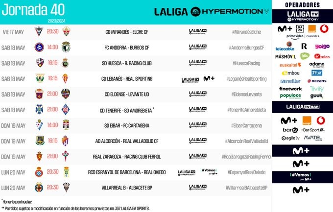 HORARIOS | Estos son los horarios de la jornada 40 en #LALIGAHYPERMOTION.