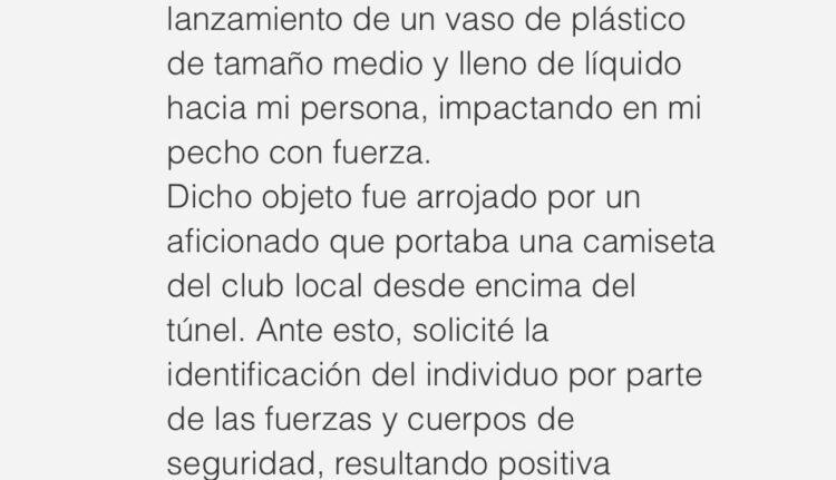 Identificado el autor del lanzamiento a Quintero González; ya hay acta del colegiado reflejando los incidentes
