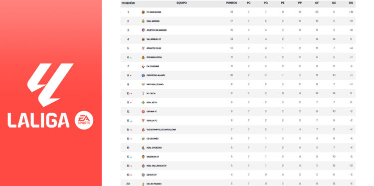Finalizaba este jueves la jornada 7 de LaLiga EA Sports, de carácter inter semanal; uno de los encuentros destacados de este último día de competición ha sido el Espanyol – Villarreal, culminado con una derrota de los nuestros por 1-2 que los deja decimocuartos en la tabla, a dos puntos de las posiciones de descenso.