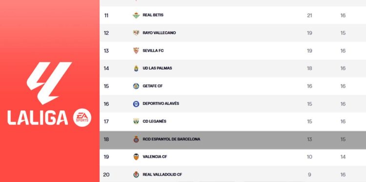 La jornada 16 de LaLiga EA Sports se presentaba crucial para los equipos inmersos en la lucha por la permanencia, con el Espanyol debiendo esperar hasta el lunes para saltar al césped. Los pericos cerraban la fecha enfrentándose al Getafe en el Coliseum, en la que era una buena ocasión de dar un salto en la tabla teniendo en cuenta que los resultados de sus principales competidores en esta apretada carrera por la salvación habían acompañado. Sin embargo, la derrota de los de Manolo Gonzalez deja al Espanyol en descenso, a tres puntos de la zona de permanencia.