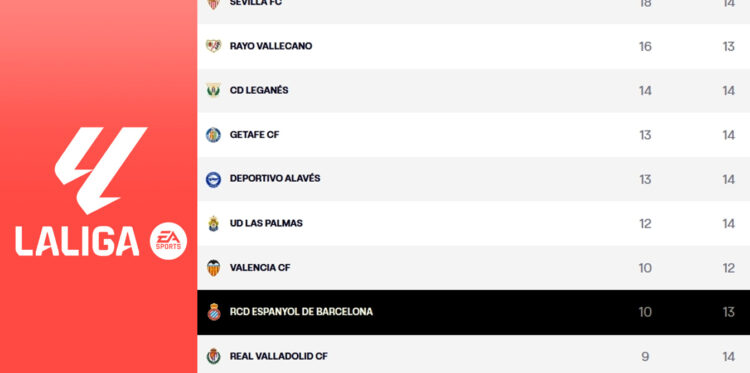 LaLiga EA Sports | El Espanyol, con un partido menos pero más dudas que nunca, acaba la 14ª jornada segundo por la cola