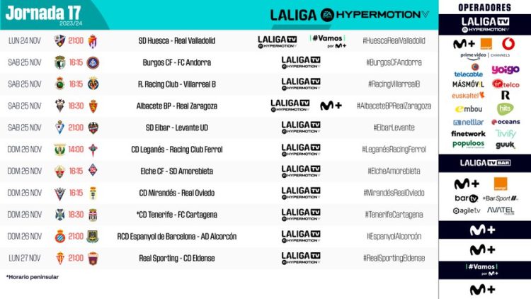 HORARIOS | Estos son los partidos que se jugarán durante la jornada 17 de #LALIGAHYPERMOTION.