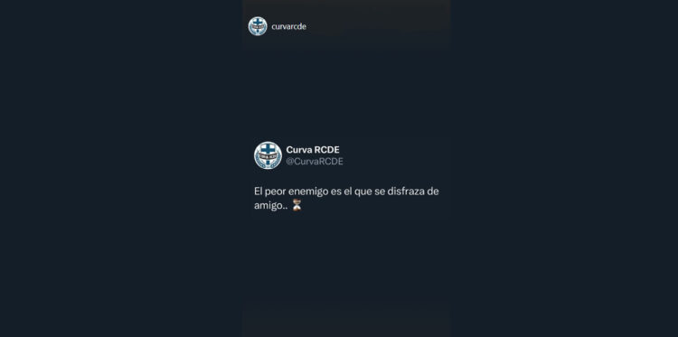 Y uno de los sectores que más claro ha dejado su enfado ha sido La Curva, el alma de la grada de animación del RCDE Stadium, ese fondo donde tantas veces se le jaleó, donde tantos cánticos llevaban su nombre. En sus perfiles sociales, sin mencionar directamente al protagonista, han dejado caer una frase tan afilada como lapidaria: “El peor enemigo es el que se disfraza de amigo…”, acompañado de un icono de reloj de arena. Tic, tac. Empieza la cuenta atrás para el que seguramente será uno de los regresos más tensos que se recuerdan en Cornellà-El Prat.
