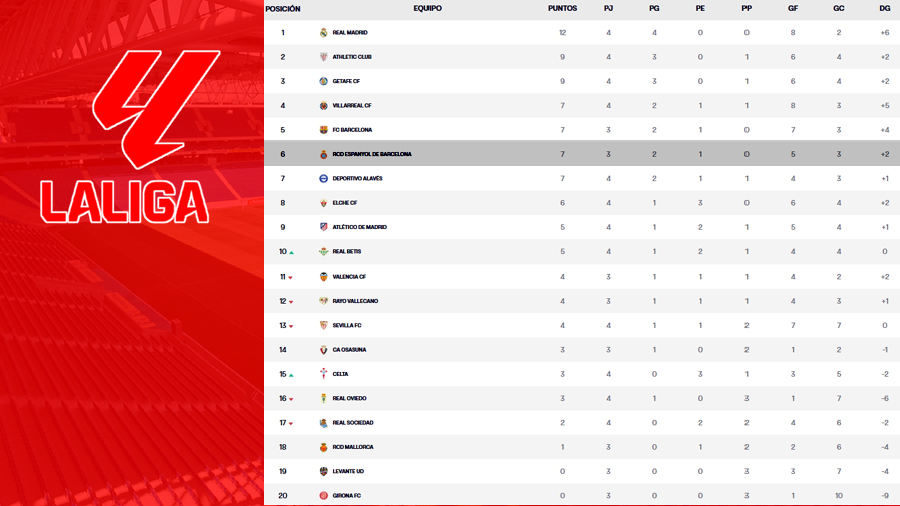 Después del parón de selecciones, LaLiga regresa con una jornada, la 4ª del calendario, cargada de partidos interesantes. Los equipos llegan con dinámicas muy distintas: algunos en la cresta de la ola, como Real Madrid y Athletic, y otros en plena tormenta, como Girona o Levante. Y en medio, el Espanyol, que se ha colado en la zona alta con un arranque sólido y que cerrará la jornada en Cornellà contra el Mallorca.