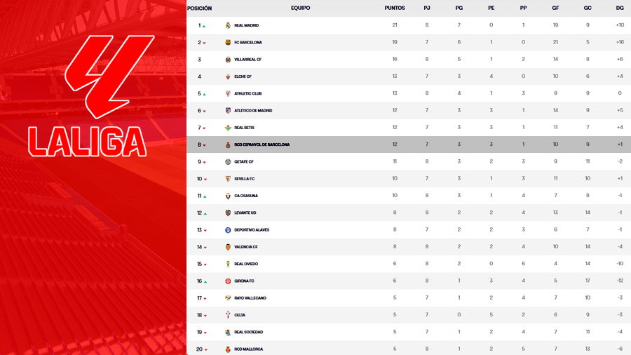Siete jornadas de Liga, las que ya se llevan disputadas, son suficientes para comenzar a ver por dónde respira cada equipo, incluido este Espanyol que pese a no haber logrado el triunfo en los últimos tres encuentros -derrota en el Bernabéu y sendos empates ante Valencia y Girona, el primero en el RCDE Stadium y en segundo en Montilivi- sigue transmitiendo buenas sensaciones, y se empeña en seguir mirando a la parte alta de la tabla.
