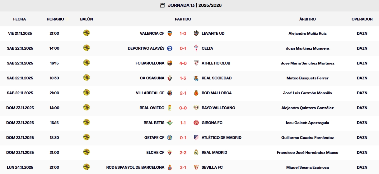 En el primer compromiso del sábado el Celta ganó por 0-1 al Alavés en Mendizorroza con un gol de penalti de Iago Aspas. El partido fue muy espeso en la primera parte, sin disparos a puerta. Aspas provocó y transformó el penalti que decidió el choque. El Alavés lo intentó con cambios ofensivos, pero no encontró el empate. Los gallegos encadenan tres victorias a domicilio por primera vez desde 2018.