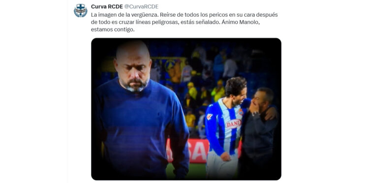 La reacción de La Curva, el sector más pasional de la afición blanquiazul, no se ha hecho esperar. A través de sus canales oficiales, el grupo de animación calificó la escena como “la imagen de la vergüenza”. En un mensaje contundente, expresaron: “Reírse de todos los pericos en su cara después de todo es cruzar líneas peligrosas, estás señalado. Ánimo Manolo, estamos contigo”.