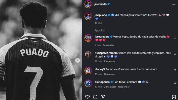 El capitán del Espanyol, Javi Puado, ha querido tranquilizar y motivar a la afición tras conocerse la lesión que lo tendrá fuera entre seis y ocho semanas. Lo ha hecho a su manera, con una publicación en Instagram en la que ha subido un par de fotos y ha escrito: «1️⃣ día menos para volver más fuerte!!! 💪🏽⚒️🤍💙». Un mensaje breve y directo, que enseguida ha recibido un aluvión de comentarios de apoyo.