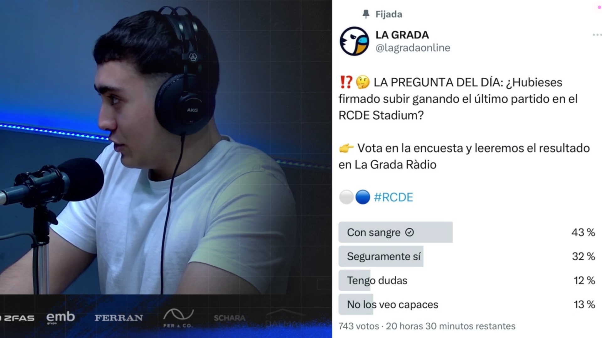 Hoy en ‘La Grada Ràdio’ hemos preguntado a nuestros oyentes si el aficionado del Espanyol, tras una temporada tan complicada, hubiese firmado poder subir ganando el último partido en el Stage Front Stadium, y la respuesta ha sido positiva en un amplio porcentaje.