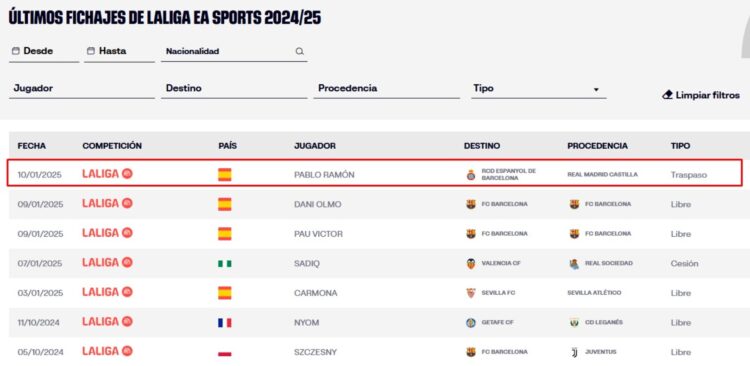 Pablo Ramón, central de 23 años recientemente incorporado al RCD Espanyol, figura ya en el listado de jugadores inscritos en la web de LaLiga. El defensa balear, que ha firmado hasta 2028, podrá defender los colores blanquiazules en cuanto esté recuperado de su lesión: recordemos que el defensa mallorquín no podrá estrenarse de inmediato bajo las órdenes de Manolo González, ya que se encuentra en la última fase de recuperación de la ruptura del ligamento cruzado anterior da su rodilla derecha sufrida en abril pasado en partido ante el Burgos. Hasta ese golpe era pieza clave en el conjunto de Alessio Lisci, jugando prácticamente todos los minutos de la temporada. El futbolista perico sigue dando pasos hacia su recuperación total, pero se estimaba que hasta finales de febrero o marzo no podrá hacer su estreno en Primera división con el RCDE.