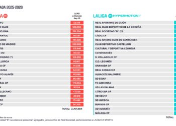 LaLiga ha publicado este viernes los nuevos límites salariales de los clubes de Primera y Segunda división, un dato que ...