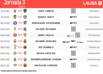LaLiga ha confirmado los horarios de la tercera jornada de LaLiga EA Sports de la temporada 2025-26, que arrancará el ...