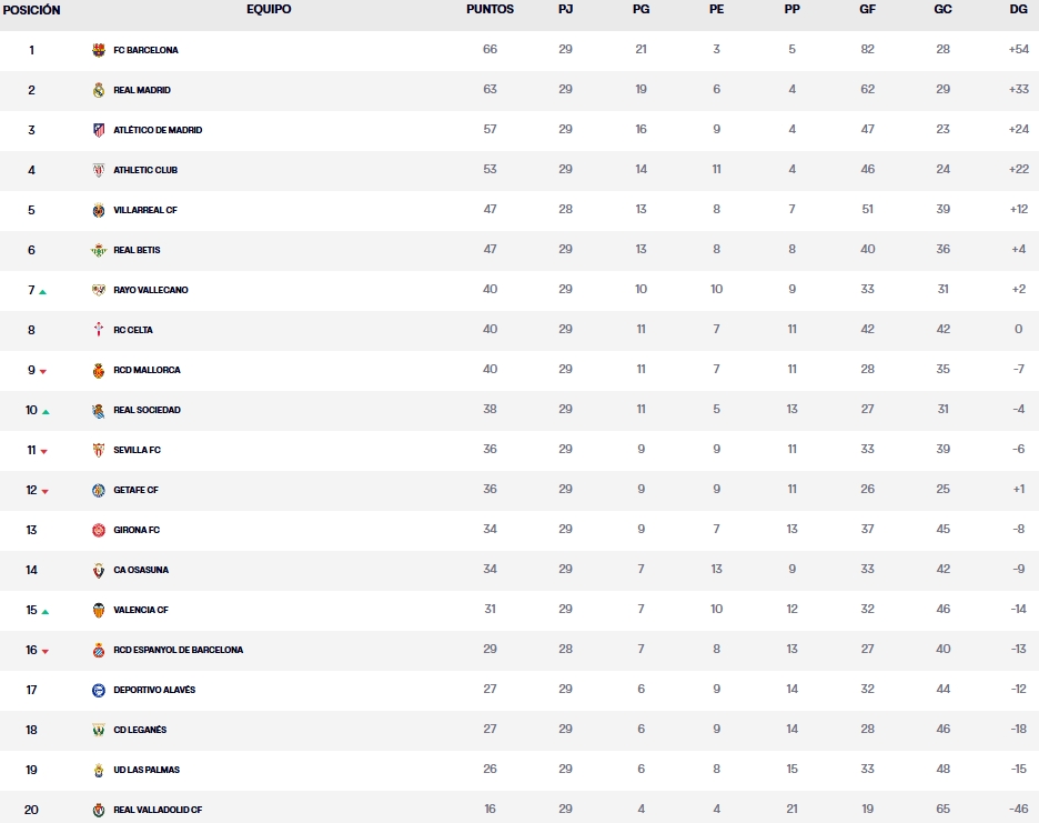 Este fin de semana se disputa la jornada 30 de LaLiga EA Sports, una cita que arrancará el viernes 4 de abril con el duelo entre el Rayo Vallecano y el Espanyol y concluirá el lunes 7 con el enfrentamiento entre Leganés y Osasuna.
