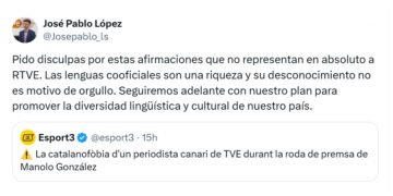 RCD Espanyol El presidente de RTVE pide disculpas por las palabras de un reportero de la cadena pública sobre el catalán 22 de diciembre de 2024