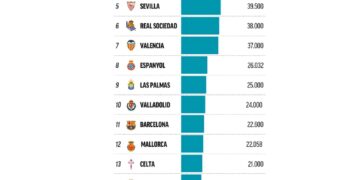 RCD Espanyol Los abonados de cada equipo de La Liga: el Real Madrid lidera una lista en la que el Barça es undécimo 7 de septiembre de 2024