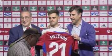 RCD Espanyol Detalle de Óscar Melendo hacia Dani Jarque en su presentación con el Granada 10 de agosto de 2022