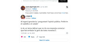 RCD Espanyol J.J. Watt enciende el debate lingüístico entre los pericos con una simple pregunta: “¿Castellano o catalán?” 17 de julio de 2025